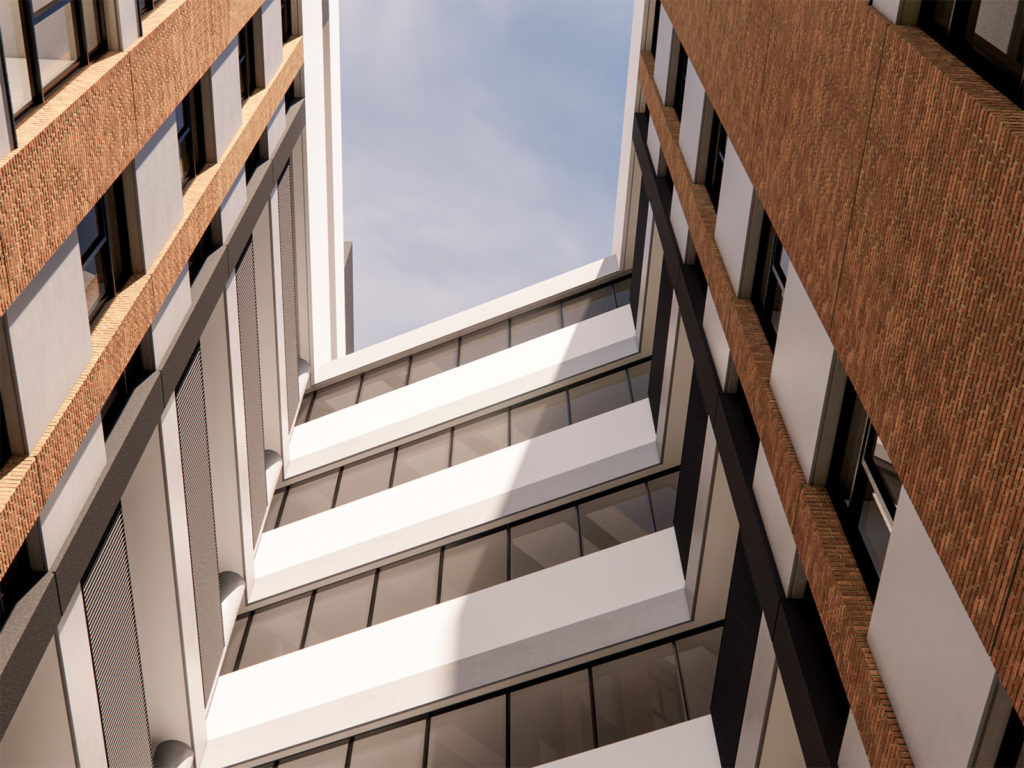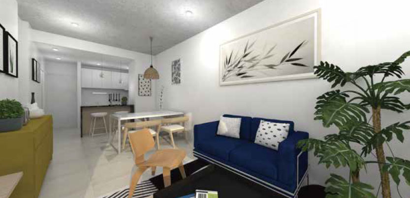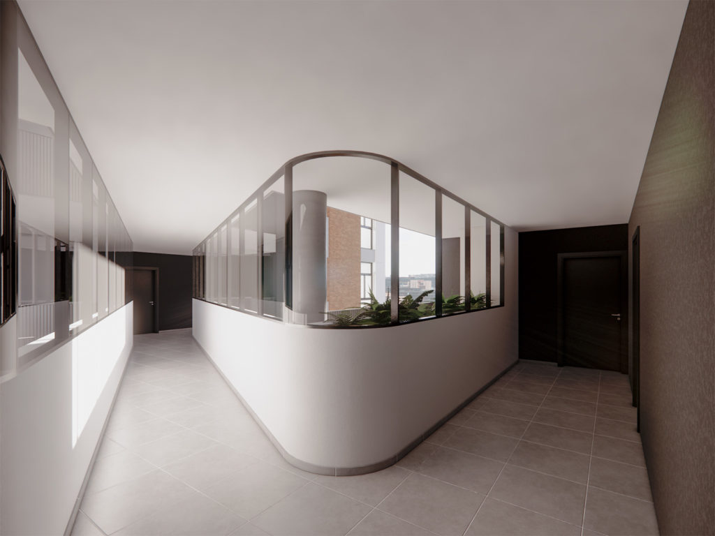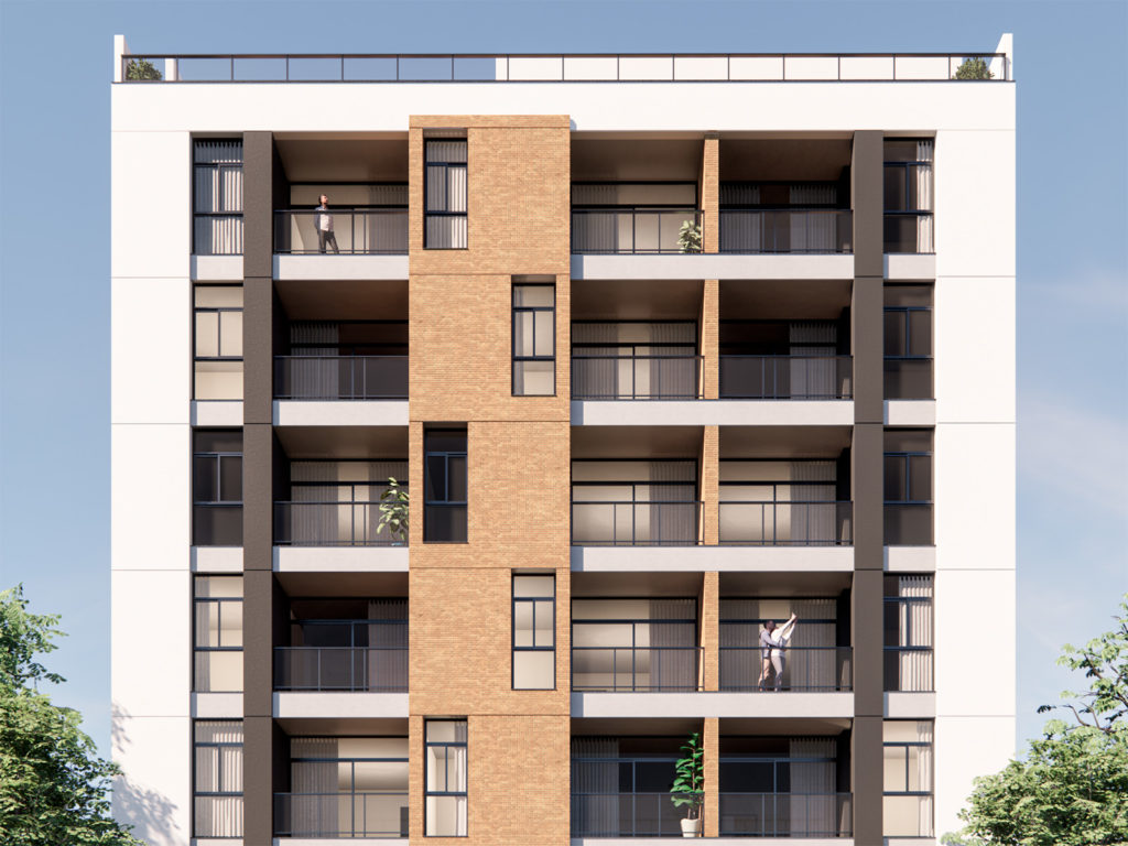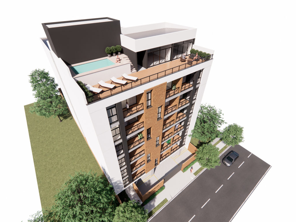 En los 6 niveles superiores, se encuentran pisos de 6 departamentos cada uno, con 1, 2 y 3 dormitorios y baño completo y toilette, ámplia cocina de concepto abierto con el living comedor y balcones.